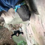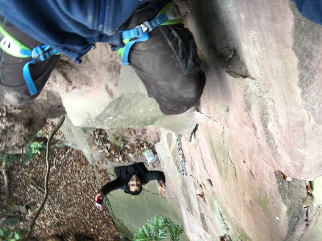 Der letzte Cache unserer heutigen Klettertour war Seilspiele-Harteszeug. Der zweite von ingesamt vier Caches der Serie. Da wir die Wand eigentlich nur noch begutachten wollten, gingen wir abgesehen von unseren Gurten ohne Material los. Dort angekommen konnten wir uns beim Anblick der Wand nicht verkneifen den Cache nicht doch noch zu loggen. Also boulderten wir ein wenig und konnten den Cache zum Tagesabschluss noch loggen.